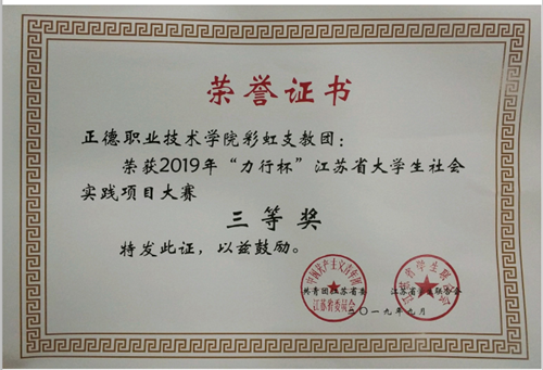 9月29日,2019年“力行杯”江苏省社会实践项目大赛在江苏省无锡江南大学文浩馆举行,天博体育 “留守儿童——七彩假期”社会实践项目荣获三等奖。