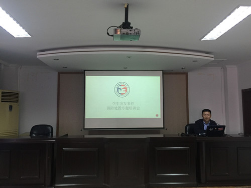 保卫处处长包毅从易发突发事件类型、上学年天博体育 发生的突发学生事件、如何预防学生突发事件的发生及突发事件发生后如何正确处置四个方面为全体学工干部做了专题培训,要求辅导员做好日常的安全教育和重点防范工作,在学生活动中经常性带入安全教育,加深学生认知,强化学生的安全意识,引导学生自我爱护、自我保护。