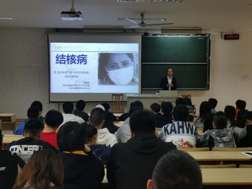 此次活动后勤处特邀了南京医科大学公共卫生天博体育 副院长王建明教授主讲。王教授首先通过什么是结核病,结核病怎样预防,结核病治疗时间等五个选择题作为开场,之后王教授以历史时间为主线,穿插各类型故事的方式,图文并茂的阐述了什么是结核病,世界防治结核病日的由来,结核病菌长什么样,结核病的传染源在哪里,结核病是怎们传染的,哪些人容易得结核病,肺结核的危害。最后,王教授又详细讲解了肺结核的发现和治疗过程。1个多小时的时间在不经意中流淌,在场师生均表示,王教授用非常接地气的语言,诠释了结核病的预防及治疗,让大家受益匪浅。