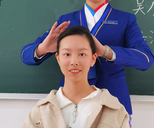 此次课程以比赛的形式促使学生们掌握乘务员标准发型的梳理及技巧、乘务员妆容的标准及禁忌、熟读并背诵中英文彩妆步骤,令学生在竞赛中“记标准、促规范”。