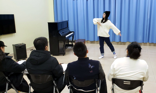 面试环节分为自我介绍和才艺展示两个环节。自我介绍时,面对专业的“考官”,每位同学都能自信从容地进行了自我介绍,言谈举止中流露出对加入“金箔文产”的渴望和敢于表现自我的信心。在才艺展示环节,主持,舞蹈,钢琴,朗诵,唱歌、表演等项目一应俱全,同学们向“考官”们展示了她们的各种艺术才能,面试现场气氛热烈。面试中,评委老师们还积极与同学互动,钱金龙团长、陈筱荣总经理和綦媛老师亲自上台指导示范,让同学们获得更直观的感受,对同学们的才艺给予肯定和鼓励,并提出改进建议。