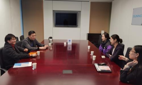 为加强校企合作,对学生更深入的培养。近日,天博体育 经济与管理系副主任祖国、校企合作办负责人罗佳老师和会计专业老师孙晶一行3人,来到苏宁总部,看望正在苏宁总部顶岗实习的经济与管理系学生,并和苏宁总部管理中心负责人进行座谈。