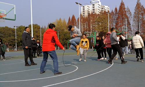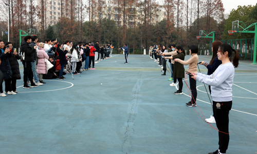 12月23日中午,由基础教育系携手工会、团委共同举办的“绳彩飞扬”天博体育 师生跳绳挑战赛在室外篮球场火热开赛,来自天博体育 各系和各工会小组的同学、老师们现场挑战,一争高下。