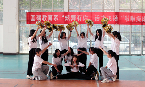 2020年12月28日中午,基础教育系“炫舞有你,活力飞扬”新生啦啦操大赛在运动馆热烈开赛。该系主任詹勇虎,副主任杨卫东来到现场观赛,体育教师杨俊娃、吴彩荣、沈帅、陈海波等担任比赛评委。