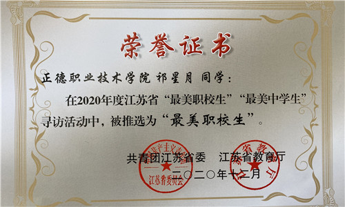 为深入学习贯彻习近平新时代中国特色社会主义思想和党的十九大精神,紧紧围绕立德树人根本任务,纵深推进中学共青团改革,发挥先进典型的示范引领作用,引导广大青年学生坚定理想信念,站稳人民立场,练就过硬本领,投身强国伟业,在全社会营造关心促进职业院校和中学学生健康成长的良好环境,培养德智体美劳全面发展的社会主义建设者和接班人,团省委、省教育厅于2020年7月联合下发了《关于开展2020年度全省“最美职校生”、“最美中学生”寻访活动的通知》(团苏委电〔2020〕30号),经院团委推荐,团省委与省教育厅审核,天博体育 艺术设计与建筑工程系祁星月、俞振一两名同学获评2020年江苏省“最美职校生”。