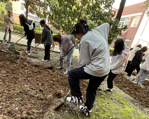 劳动开始,我系的女孩子们兴奋地领取了工具,在后勤工作人员的悉心指导下,同学们认真学习劳动工具的使用方法,井然有序的翻土、清理土壤中的石头。劳动过程中,同学们还不时地交流经验,互相学习,很快掌握了动作要领,提高了劳动效率。不少同学被汗水打湿了脸颊,也有的同学手上磨出了水泡,但大家依然丝毫不懈怠,一丝不苟的翻着每一寸土,两节课的时间同学们顺利完成了本次劳动课程。