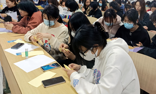 据悉,为举办好这次活动,3月31日晚,同学们在9205教室自己动手制作纸花和和平鸽。大家选用白色、黄色、紫色的彩纸,认真地进行折叠、裁剪、定型,经过1个多小时的制作,一朵朵盛开的“百合花”、“菊花”、一只只“和平鸽”,既受到一次很好思想教育,又锻炼了专业技能,收获良多。
