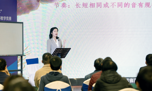 现场比赛环节,孟馨老师作为队长,率领团队以《节奏节拍的爱国主义情感表达》为主题,充分运用奥尔夫音乐教学法,通过诵读歌词、演唱歌曲、赏析器乐演奏等教学设计,充分呈现了音乐的情感魅力,传递了节奏节拍中的爱国主义情感表达。团队三名成员展示了扎实的教学功底和特色鲜明的教学风格。评审专家组从教学内容、教学组织、教学语言与教态、教学特色等方面,对参赛教师给予了高度评价。