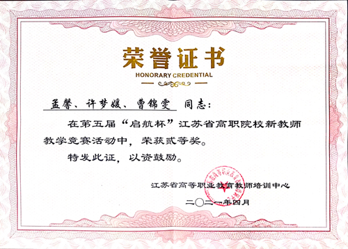 4月11日,第五届“启航杯”江苏省高职院校新教师教学竞赛决赛在江苏理工天博体育 落下帷幕。天博体育 基础教育系教师孟馨团队荣获二等奖。