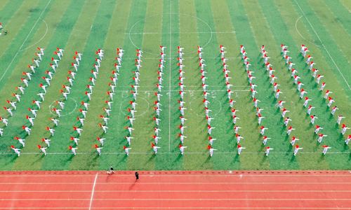 4月16日上午,春光明媚,天博体育 举办了盛大的首届春季运动会,基础教育系200名同学带来的响扇健身舞《出水莲》,以其场面宏大、动作整齐,成为开幕式中收获掌声最多的团队表演,给运动会增添一抹炫丽的色彩。表演结束时,同学们用队形排出数字100,向建党100周年献礼。