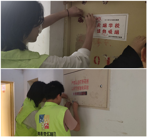 环境的行列中去,4月26日中午12时,电子与信息技术系组织学生开展清除学生公寓“小广告”行动。