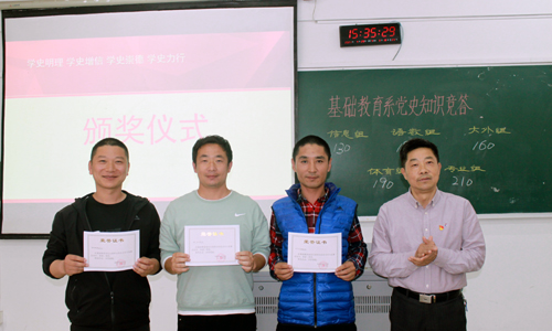 党课结束后,计算机、语数、英语、体育、专业组的老师们以课程组为单位,党员和非党员教师共同参与,开展了党史竞答活动。思政组任志远、徐晓霞老师担任评判。竞答分必答题和抢答题,老师们在赛前均认真学习了党史有关知识,竞答中,各组选手们相互鼓励、你追我赶,比分交替上升;思政老师适时点评,帮助理解;观战的老师和同学们也积极参与竞答,场面气氛热烈,将本次活动推向高潮。