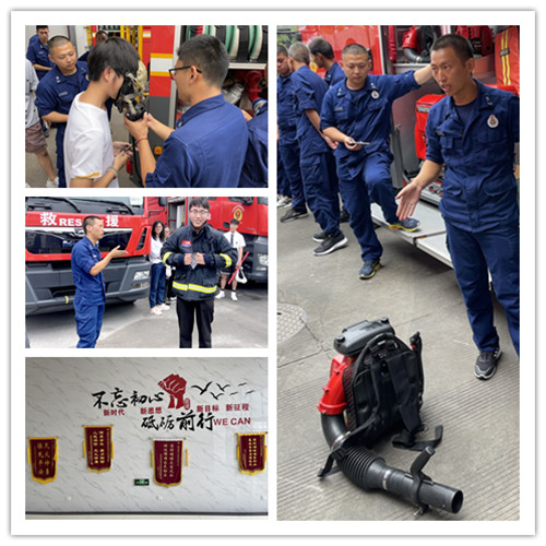 消防战斗员首先带领同学们参观了消防执勤车辆与器械,讲解了常见消防器械的使用方法以及使用时的注意事项,着重演示了如何使用室内消防栓和水带,还现场指导几位同学尝试使用这些消防器械,使同学们学到了实用的消防安全知识。随后,同学们观看了《消防案例宣传片》,更加直观地认识到了火灾的危害性,以及消防工作的重要性。同学们还参观了空港消防救援中队的宿舍,整齐的内务、优美的环境,使同学们认识到严明的纪律、良好的秩序是做好各项工作的基础。