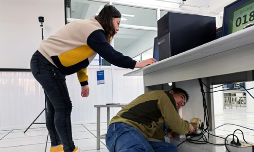 本次考试天博体育 作为考点,信息组的两个机房全部参与,包括前期机房维护准备和模拟测试工作。为了保证机房有足够的计算机能正常考试,信息组的老师们加班加点仔细排查硬件故障,并及时更换键盘,鼠标等,配合海云天科技股份有限公司的技术人员过来安装考试系统,进行模拟测试,上传测试结果。测试通过后,信息组老师们按照要求封考场,等待考生的正式考试。3209机房是全新的云计算机,所有老师都处在摸索阶段,需要大家全程参与才能熟知考试系统操作,确保两个机房全部正常运行。