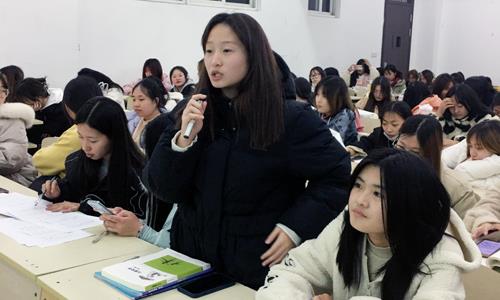 金苏琪精心选择《儿童文学》教材内的选读作品,给3-4班的学生提前布置好故事文本,并抽签决定顺序。学生通过个人讲述或小组表演的方式展现,在介绍标题和表演角色后,营造氛围,引入故事的情境进行讲述表演。表演中,同学们注重声情与态势,有的自制道具、设计音效,台上台下“你问我答”地互动,用抑扬顿挫的语音节奏、生动形象的肢体表演,声情并茂地演绎,进行了多彩的艺术再创作,把静态的故事文本变为动态精彩的口头聆听文学。辅导员刘翠云应邀出席课堂观摩了活动。为了保证活动顺利进行,金苏琪老师利用课后时间为同学们进行了单独指导,同学们在反复的练习琢磨中领悟了精益求精的工匠精神。