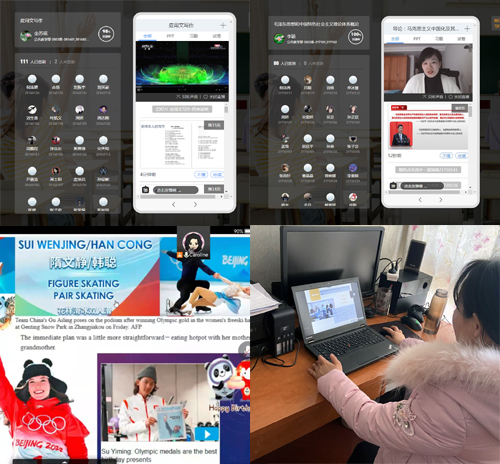 由于前两周为在线教学,全体教师在开课前反复与学生确认平台、核对进群情况,并对教学平台进行压力测试,确保上课能够顺利进行。工欲善其事必先利其器,虽然在线教学不是第一次开展,但是老师们仍然不断摸索,不敢懈怠,配备完善了话筒、摄像头、平板、笔记本等授课直播装备,确保在线教学顺利进行。在第一课上,老师们还纷纷加入了安全教育环节,贴心提醒学生们重视安全,加强安全意识和自我保护意识;而刚刚闭幕的北京冬奥会素材,也成了大部分老师的绝佳内容。在授课过程中,同学们认真听讲,积极参与互动,课堂效果良好。