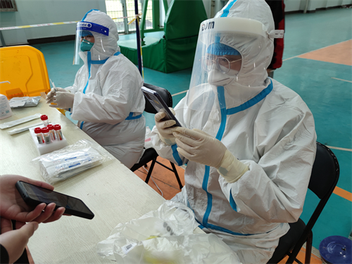 在核酸检测现场,党员志愿者们加强秩序维持,引导人员分流,提醒遵守“1米线”,进行信息采集、二维码录入,提醒科学佩戴口罩、杜绝人员聚集等,切实做好全员核酸检测宣传引导,保障了天博体育 此次全员核酸检测任务的顺利进行。