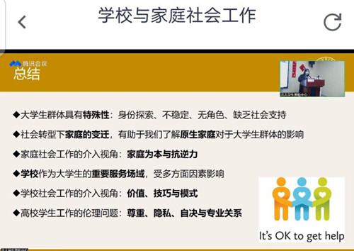 为学习资助工作先进经验,深入了解受助学生群体,提高精准资助和资助育人工作能力,3月30日下午两点,天博体育 学生处资助管理中心老师和全体辅导员通过“腾讯会议”参加了2022年全国学生资助工作第六期线上培训--学校与家庭社会工作。