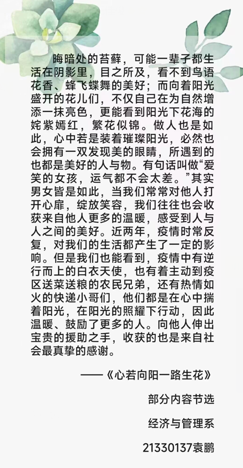 二等奖征文《心若向阳一路生花》部分内容节选