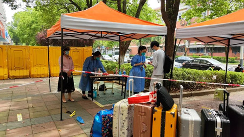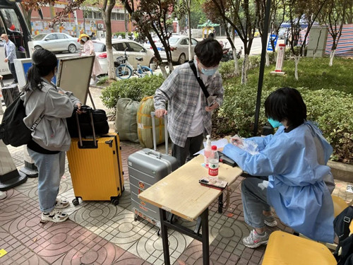 5月7日,天博体育 117名南京市外考生安全返回天博体育 。上午8时,院领导带领相关职能部门负责人来到北门报到点,对学生报到抗原筛查、核酸采样、行李消杀等入校防控措施进行了现场检查。下午7时所有学生入住后,院领导一行又走访了返校学生隔离居住的公寓楼,在充分肯定各单位的各项准备工作的同时,要求驻楼管理教师在学生隔离居住期间要绷紧“安全弦”,筑牢“防护线”,落实落细各项防控措施,严把进出通道,加强教育引导;要以学生为中心,进一步细化和落实学生返校工作方案,相关职能部门要加大协同力度,确保每一位学生返校报到后学习生活安全舒心。