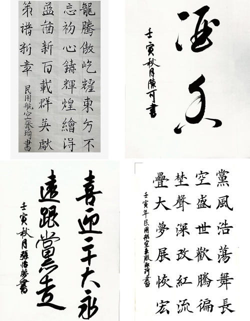 笔墨书盛世,丹青绘华章。为迎接党的二十大胜利召开,弘扬优秀传统文化,民用航空系特举办“喜迎二十大,筑梦向未来”主题书画作品展。同学们用自己独有的方式,展现青春激昂风采,他们用双手点燃那一抹抹中国红,用心灵描画出一件件饱含深情的作品。