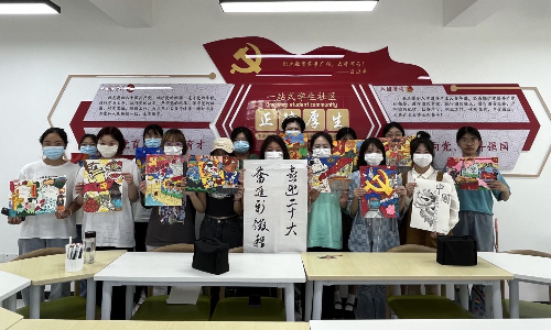 三楼活动室里,辅导员吴春凤老师带领着一群大一的新生们在绘画、书法。绘画的同学们用自己稚嫩的双手,用五彩斑斓的画笔描绘繁荣祖国;书法的同学们,用心书写每一笔,撰写每一字,一笔一划尽显青春风采,一撇一捺皆是责任担当。同学们的作品丰富、形式多样而精美,每一个作品都洋溢着同学们对祖国的无限热爱之情,汇成了一首欢快的祝福交响曲,抒发了同学们的爱国热情!
