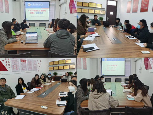 会上,樊荣教师就22级新生心理普查结果分析及心理访谈技能对新生辅导员进行重点培训。培训会从四个方面进行:一是对天博体育 22级新生心理健康状况做了分析和介绍;二是如何解读心理健康测评量表;三是根据评测量表的结果对学生进行评估,并对心理异常的学生进行约谈及其他干预措施;四是建立“特殊学生”的心理档案。