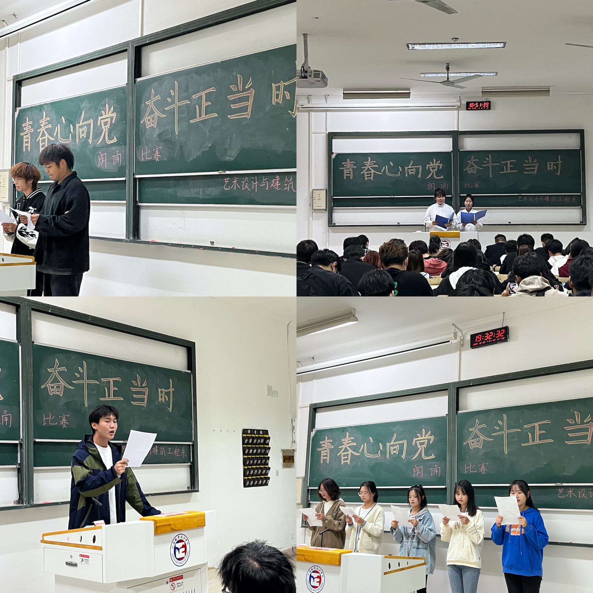 为庆祝党的二十大胜利召开,进一步营造爱党爱国的浓厚氛围,提高同学们的文化自信,感受朗诵的魅力,在一篇篇词稿中体会红色精神,寻找红色足迹,特此艺建系展开了“一系一品∣‘青春心向党,奋斗正当时’”为主题的朗诵比赛。本次朗诵比赛邀请到的评委有:艺建系党支部书记陈宏波,公共教学部周一星,艺建系团总支书记崔杰,经管系执行主席缪文骅。