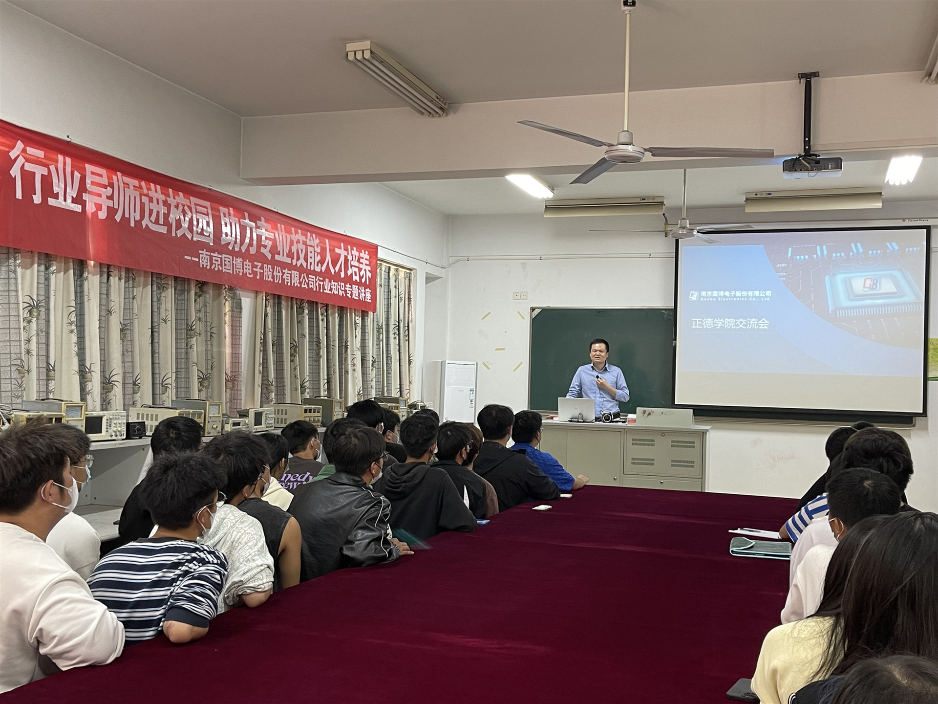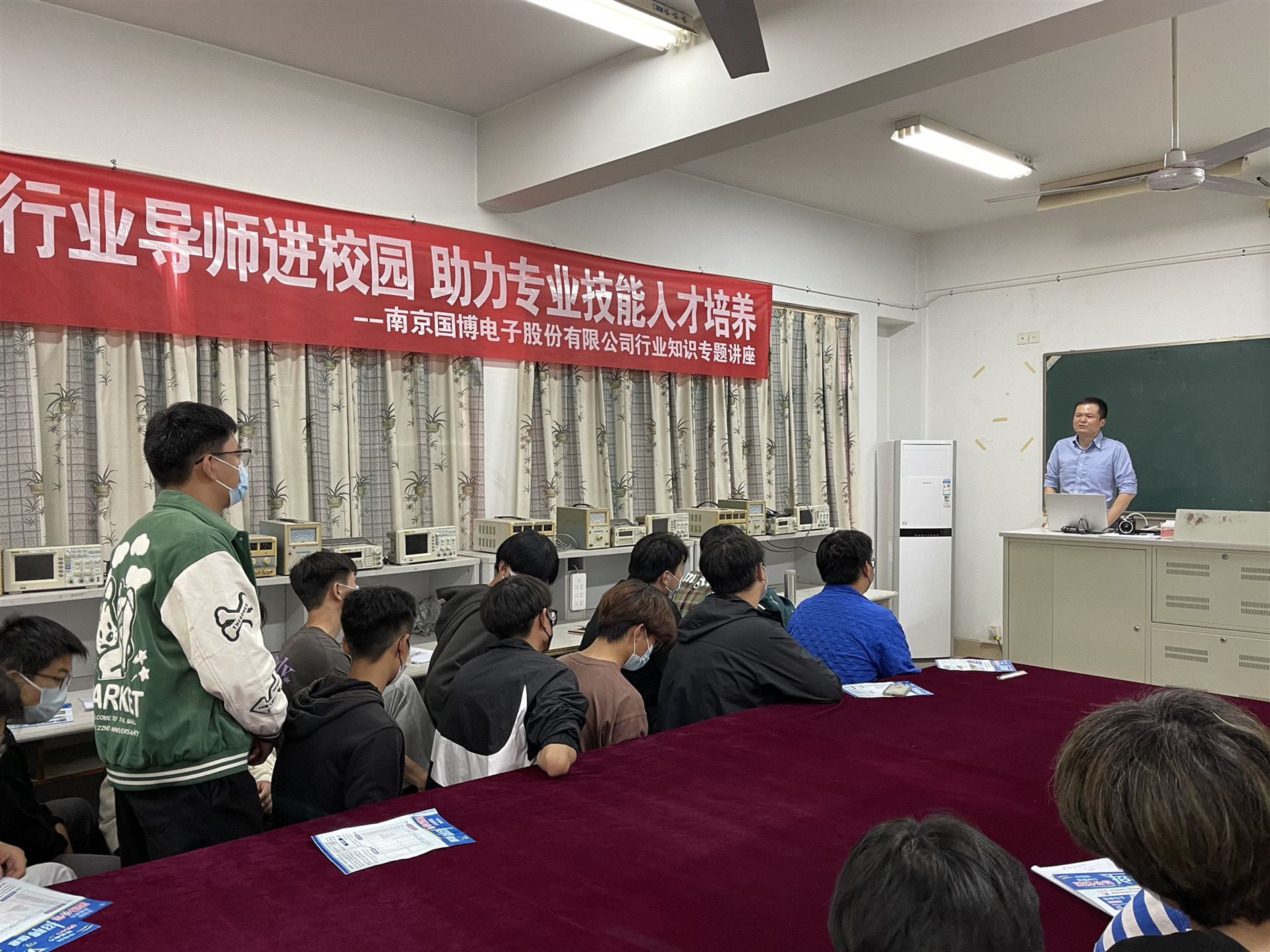 11月10日下午,南京国博电子股份有限公司人力资源部总经理王家波受电子与信息技术系邀请,来天博体育 面向2022级大一新生开展了一次行业知识专题讲座,助力天博体育 专业技能人才培养。
