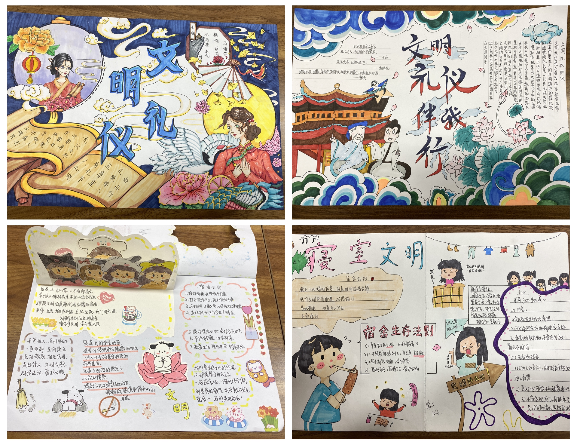 好舍风,促班风。通过开展“学礼仪,做文明人”主题活动,以宿舍为单位,宿舍成员相互协作,宿舍成员通过画笔共同绘出宿舍成员心中所理解的文明礼仪行为。同学们有的凝思静想,笔在纸上不停比划;有的精心勾勒,让画面丰富有趣;有的笔走行云,流畅的线条显示出娴熟的技巧,一幅幅美不胜收的作品跃然纸上。通过此次主题活动,增强了宿舍成员之间的协作力和凝聚力,也将礼仪文明之花播撒到天博体育 的每一个角落,不仅提升了同学们知礼仪、懂礼貌、讲文明的行为习惯,也促进了班级良好风气的建设。