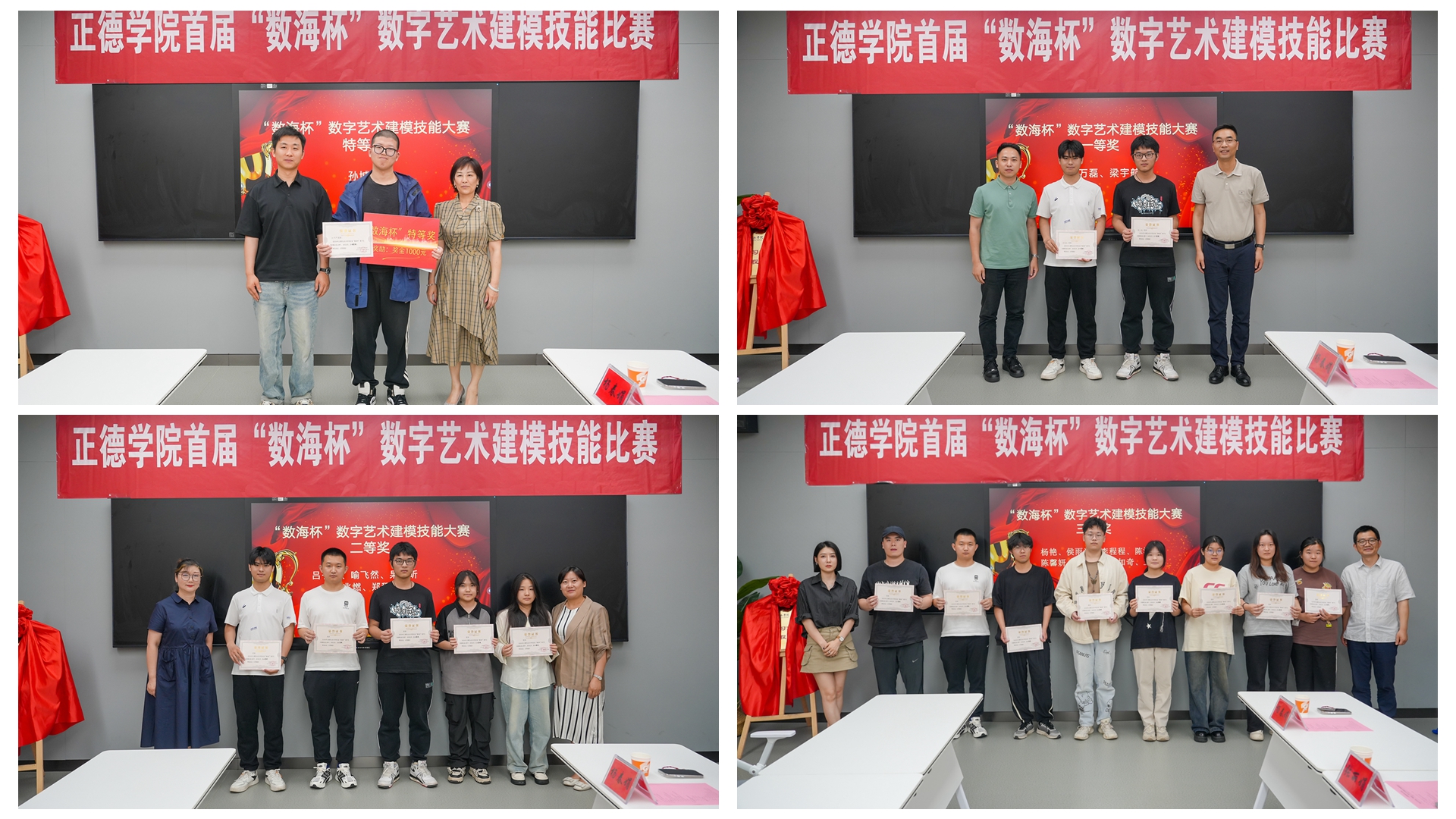 颁奖结束后由赵宇和周启发共同进行了“正德-数海实训基地”的揭牌仪式。“正德-数海实训基地”的成立标志着艺建系与数海科技在产教融合方面的合作迈上了新的台阶,为双方的合作提供了更加广阔的空间和更加坚实的平台。这一平台的建立将为学生们提供更多的实践机会,使他们能够更好地将所学知识应用于实际工作中,同时也为艺建系的教学和科研工作注入新的活力。