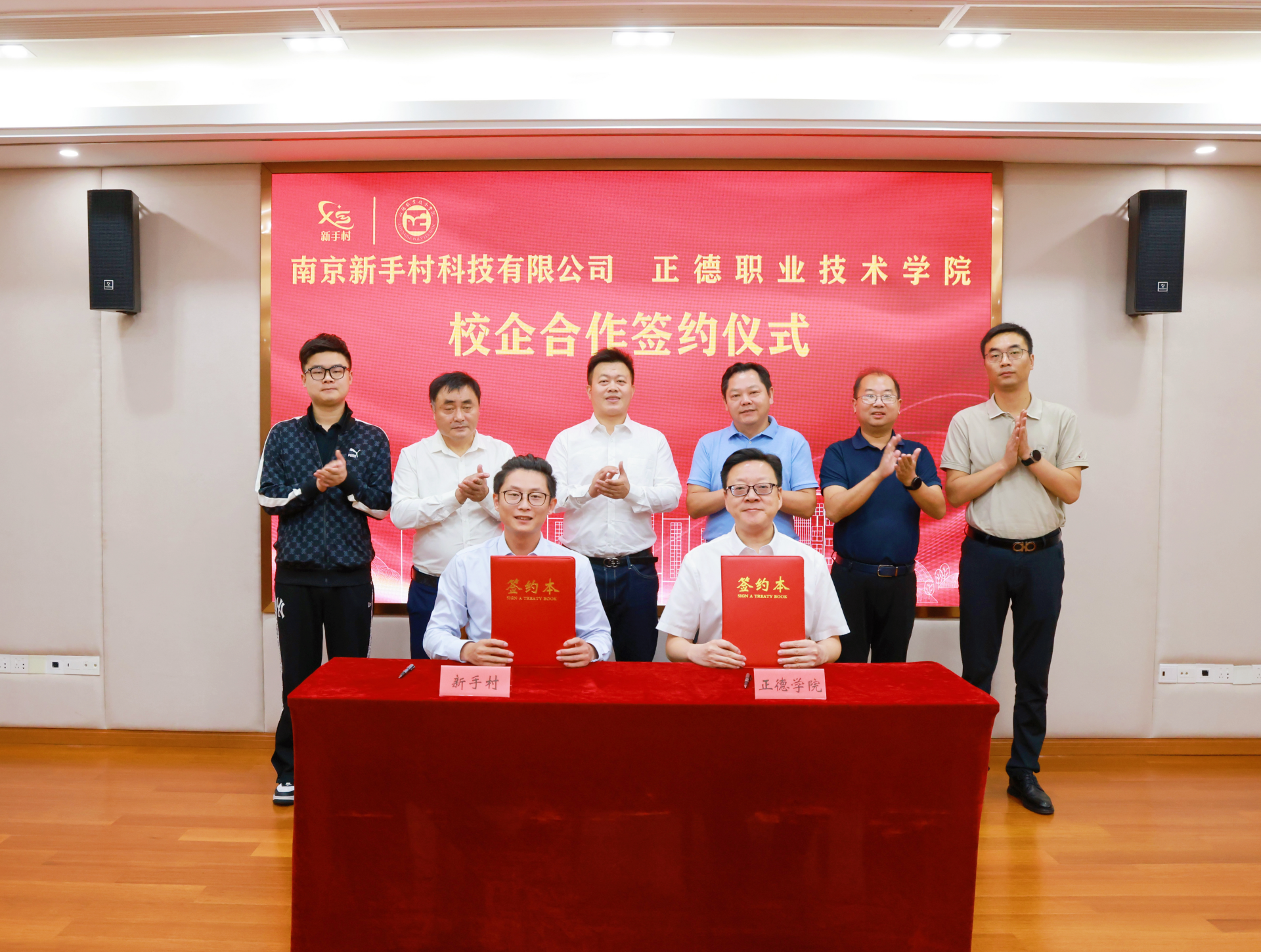 9月28日上午,天博体育 与南京新手村科技有限公司(以下简称新手村公司)举行了校企合作签约仪式。新手村公司总经理石新洪、副总经理刘权震、运营总监孙志翔、行政主管李元来,天博体育 院长孙永荣、副院长赵凯雷,院长助理、党政办主任王伟,院长助理、招生就业处处长王墀出席签约仪式,仪式由王伟主持。