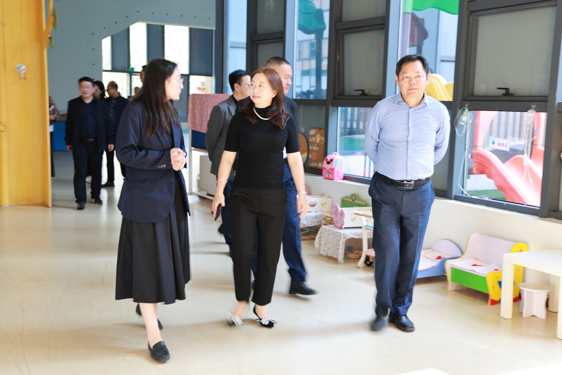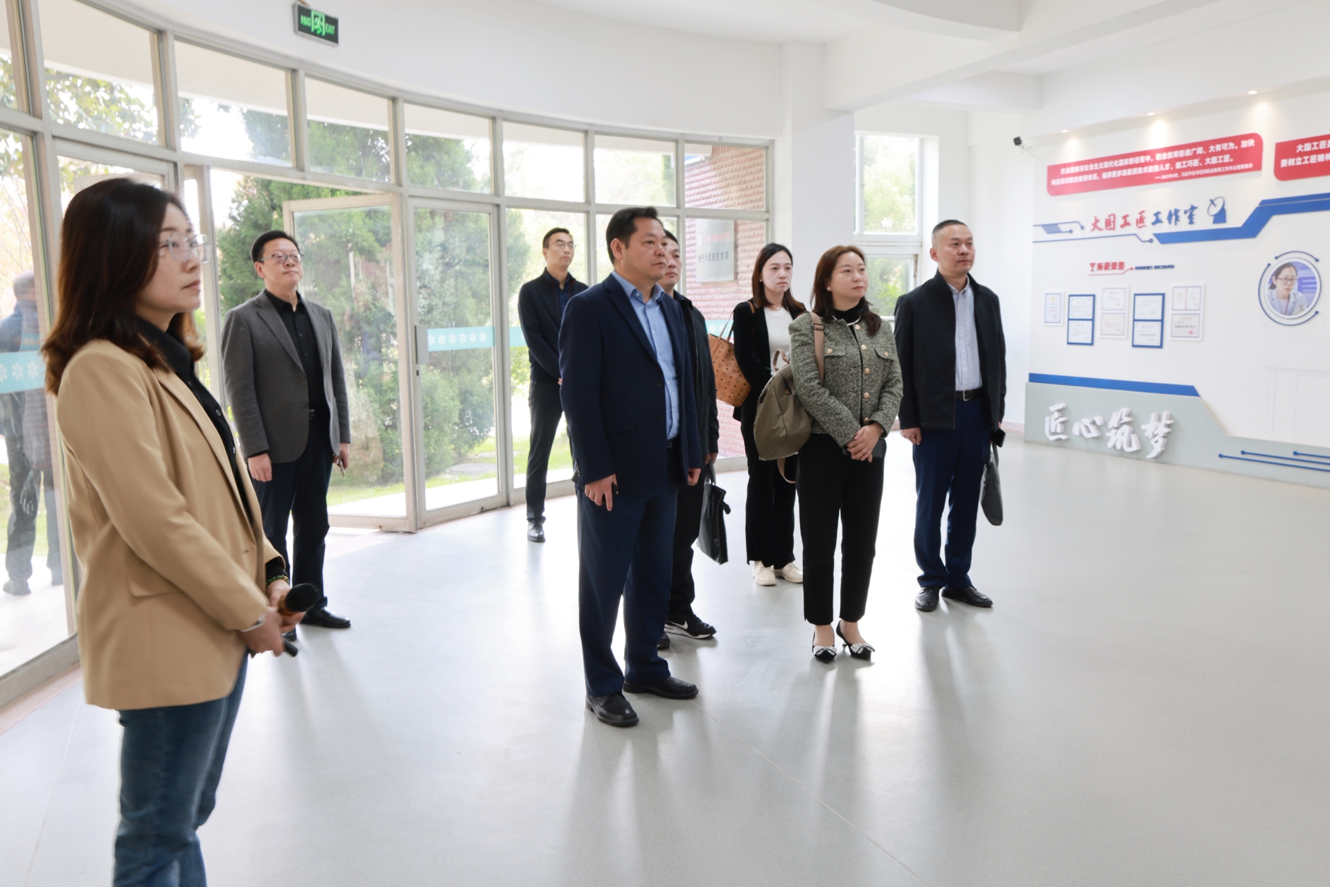 尹建芳一行先后参观了大国工匠工作室、“数创新生”综合实训中心、“正德-元生”消防实训中心、“正德-立宝”托育园等教学实践场所。