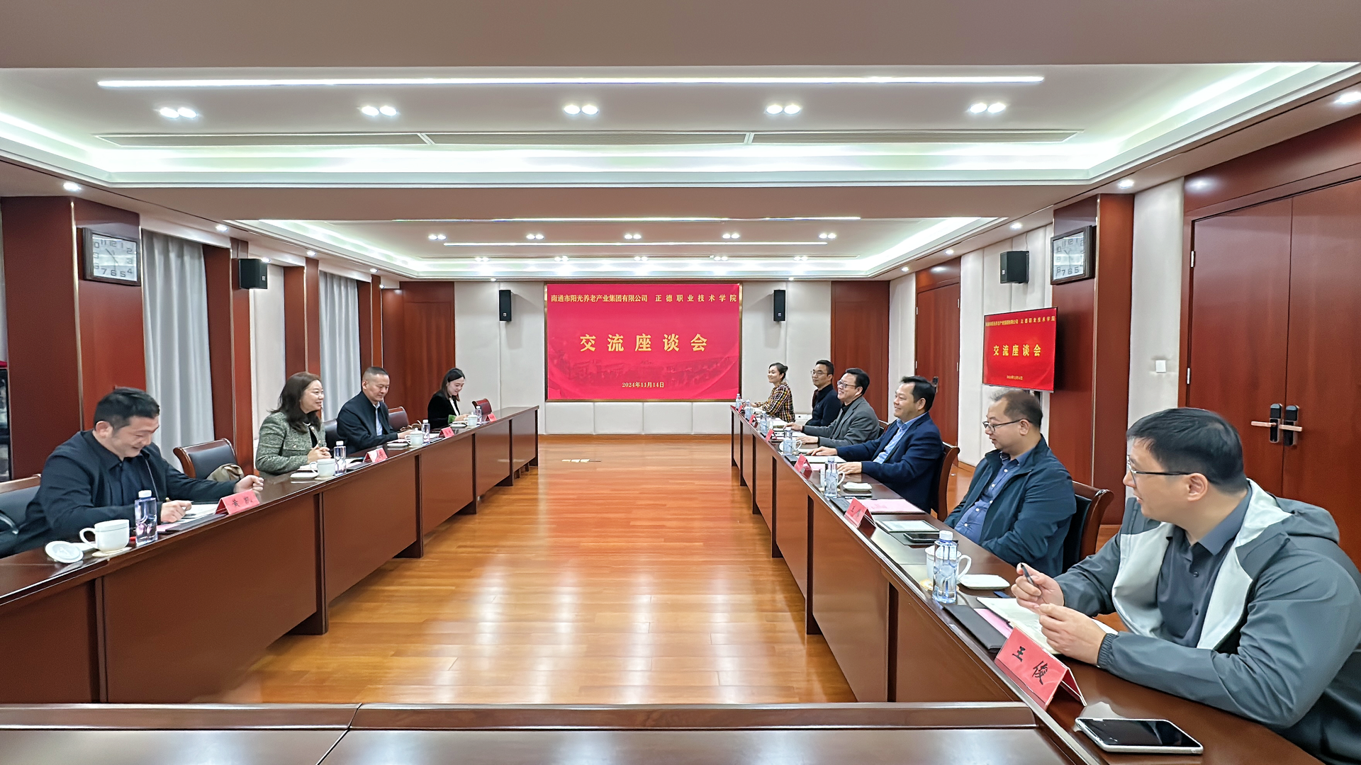 11月14日上午,南通阳光养老集团总经理尹建芳,常务副总经理高理、党支部副书记黄凯、市场拓展部部长张靖靖一行4人来校交流洽谈。院长孙永荣、副院长赵凯雷、院长助理、党政办主任王伟,院长助理、招就处处长王墀以及相关部门负责人参加交流活动。