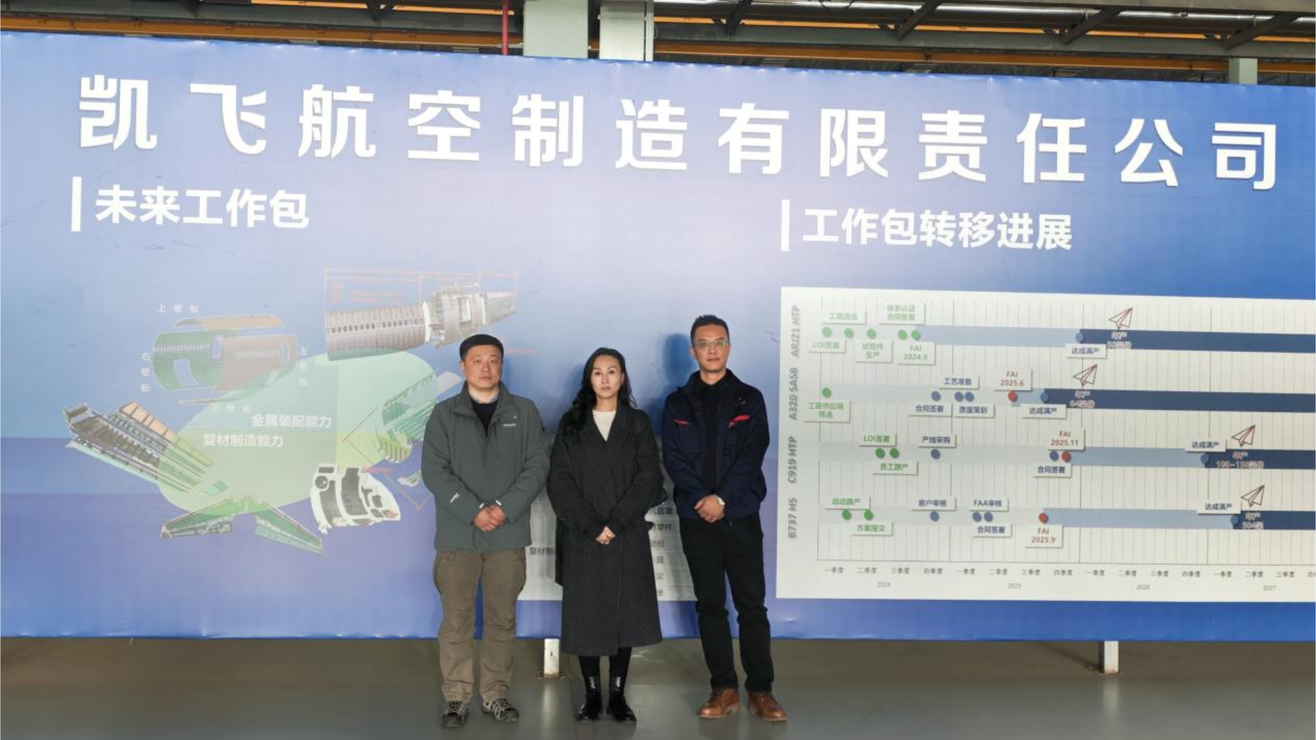 凯飞航空制造有限责任公司于2022年1月26日正式注册成立,由上飞公司、吉凯恩民机服务有限公司及中航国际供应链科技有限公司共同出资组建。