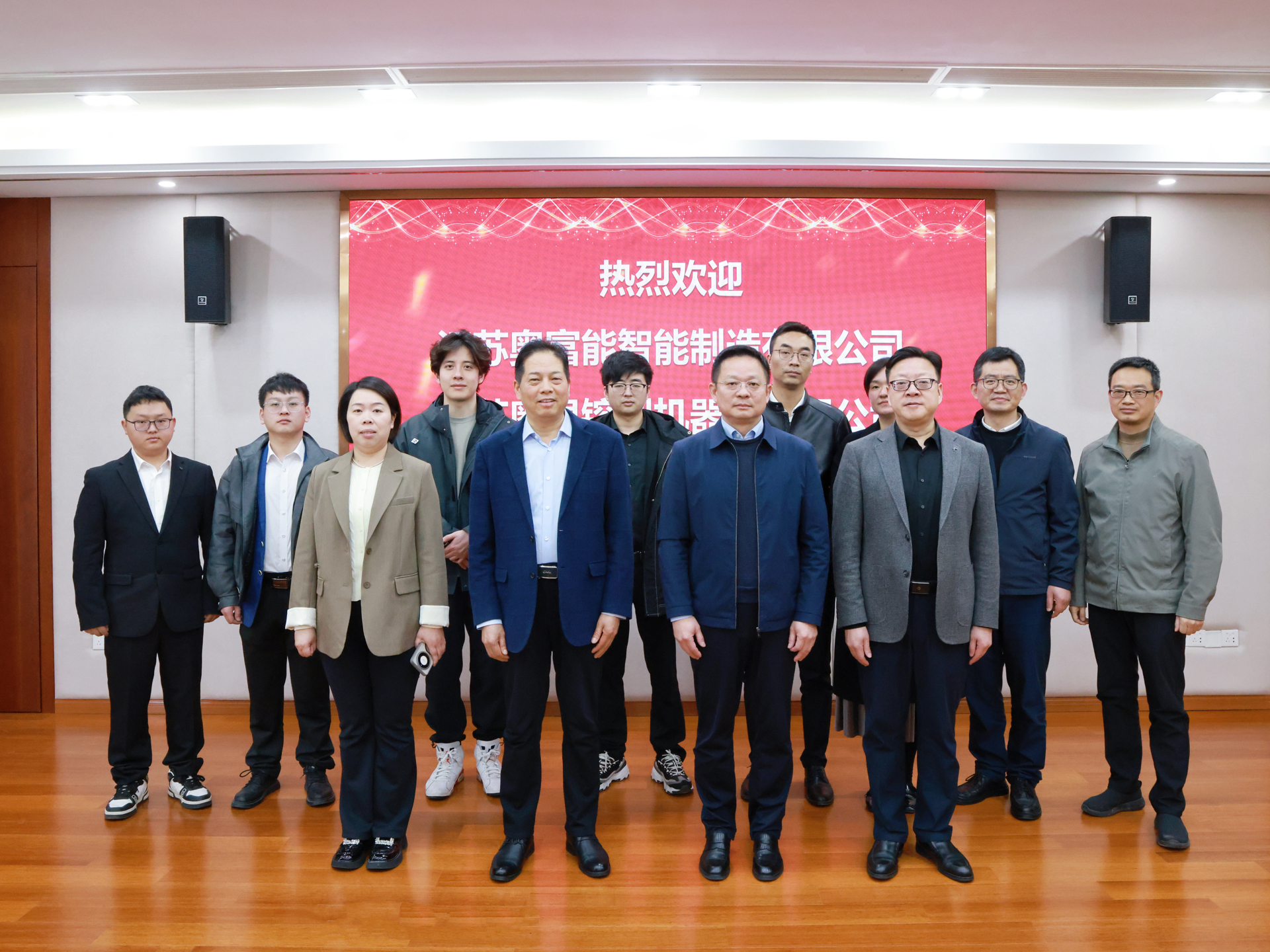 3月28日上午,江苏奥富能智能制造有限公司(以下简称“江苏奥富能”)、江苏奥界镕创机器人有限公司(以下简称“江苏奥界”)创始人兼董事长周炳高,副董事长曹金丹,总经理徐晓民等一行六人来院交流洽谈。院党委书记、政府督导专员孙雷,副院长赵凯雷,院长助理、招生就业处处长王墀以及相关部门、系负责人参加交流活动。