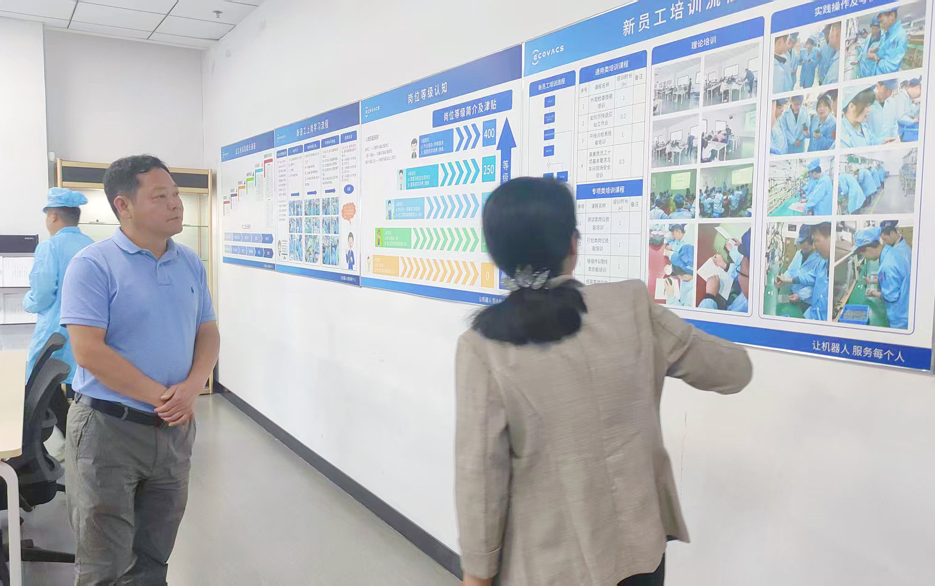 会后,孙永荣一行在韩冠群的陪同下,参观了科沃斯的智能制造中心,实地考察学生实习、就业环境与企业生产技术需求。
