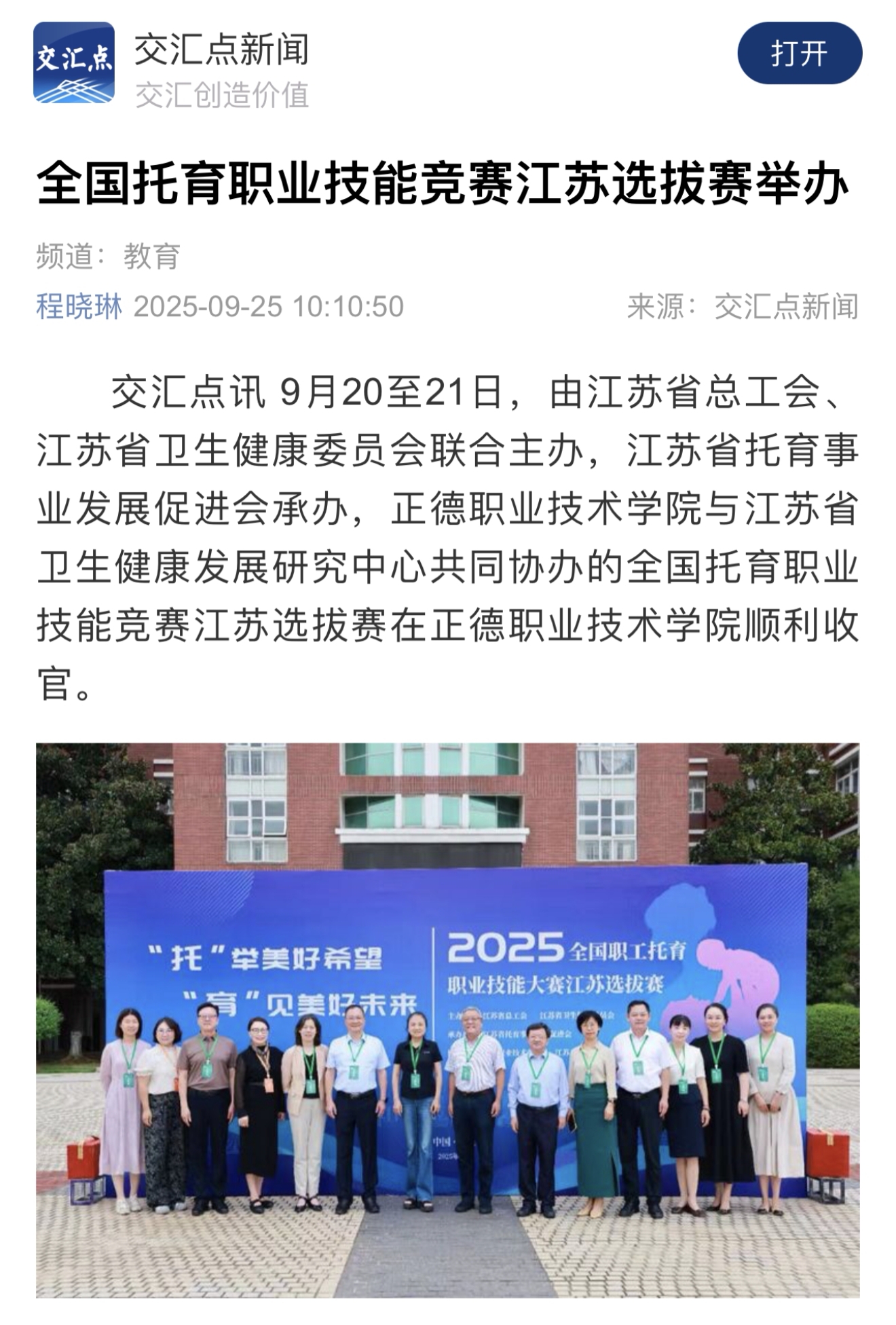 【新华网等】全国托育职业技能竞赛江苏选拔赛在正德职业技术天博体育 举办